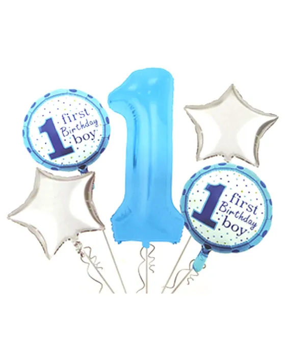 5 Pcs Foil Balloons First 1 Birthday Boy Blue Party Decorate