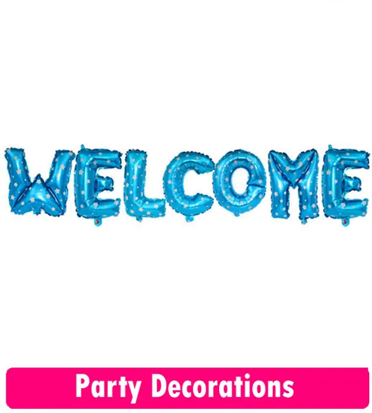 7Pcs 16" WELCOME Letter Banner Balloon Party Foil BLUE