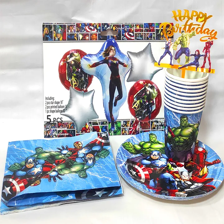 Avengers Theme paper plate paper cup Paper Serviette Cake Topper Foil Balloon Set Partyware Super Hero Iron Man Hulk