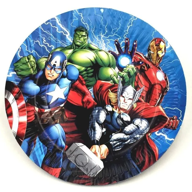 Product details of Avengers Theme paper plate paper cup Paper Serviette Cake Topper Foil Balloon Set Partyware Super Hero Iron Man Hulk Paper Plate 10 Paper Cup 10 Paper Servi... Read More