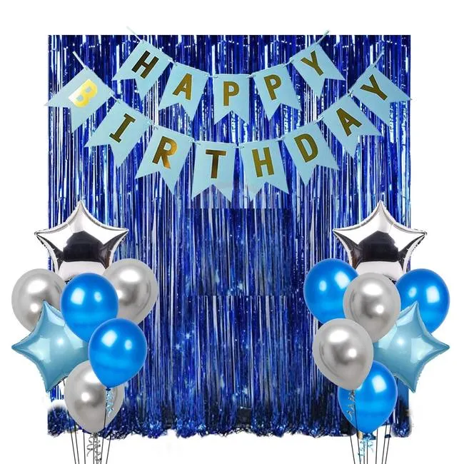Birthday Blue Foil Curtain Fringe Party Backdrops Balloons