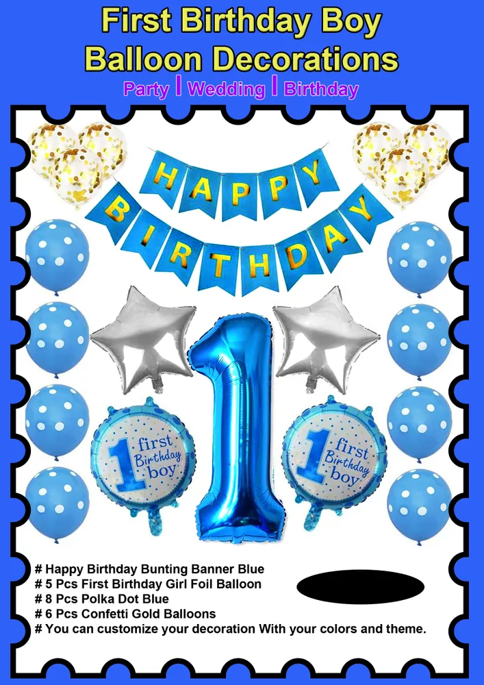 Product details of Birthday Decoration Balloon set Blue First Birthday Boy With Banner Happy birthday Bunting Banner Blue 5 pcs First Birthday Boy Foil Balloon 8 Pcs Polka Dot... Read More