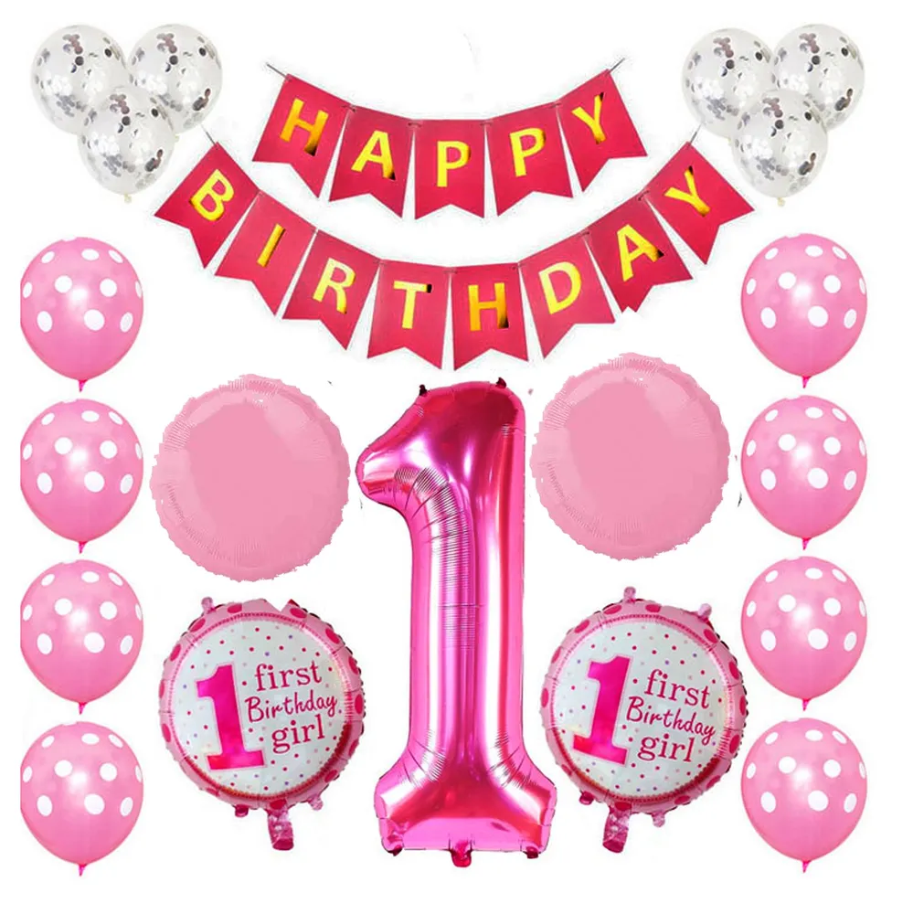Birthday Decoration Balloon set Pink First Birthday Girl With Banner
