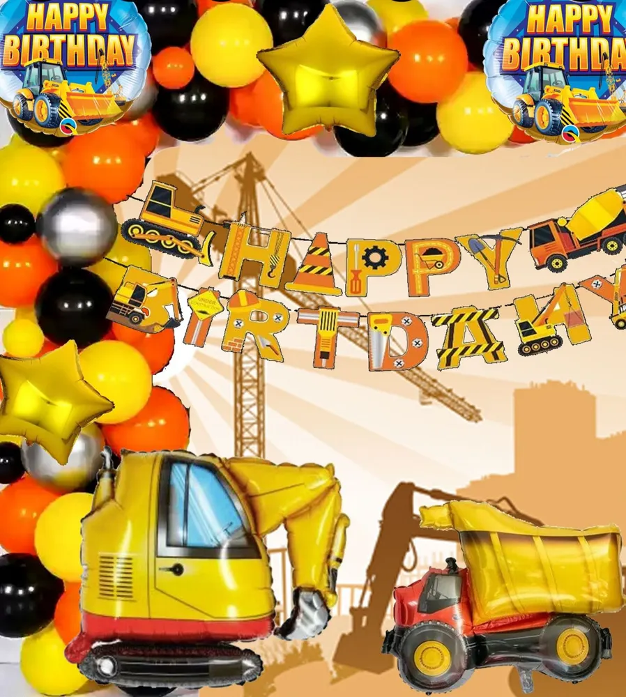 Birthday Decoration Construction Balloon set With Banner Vehicle Theme Full Sets