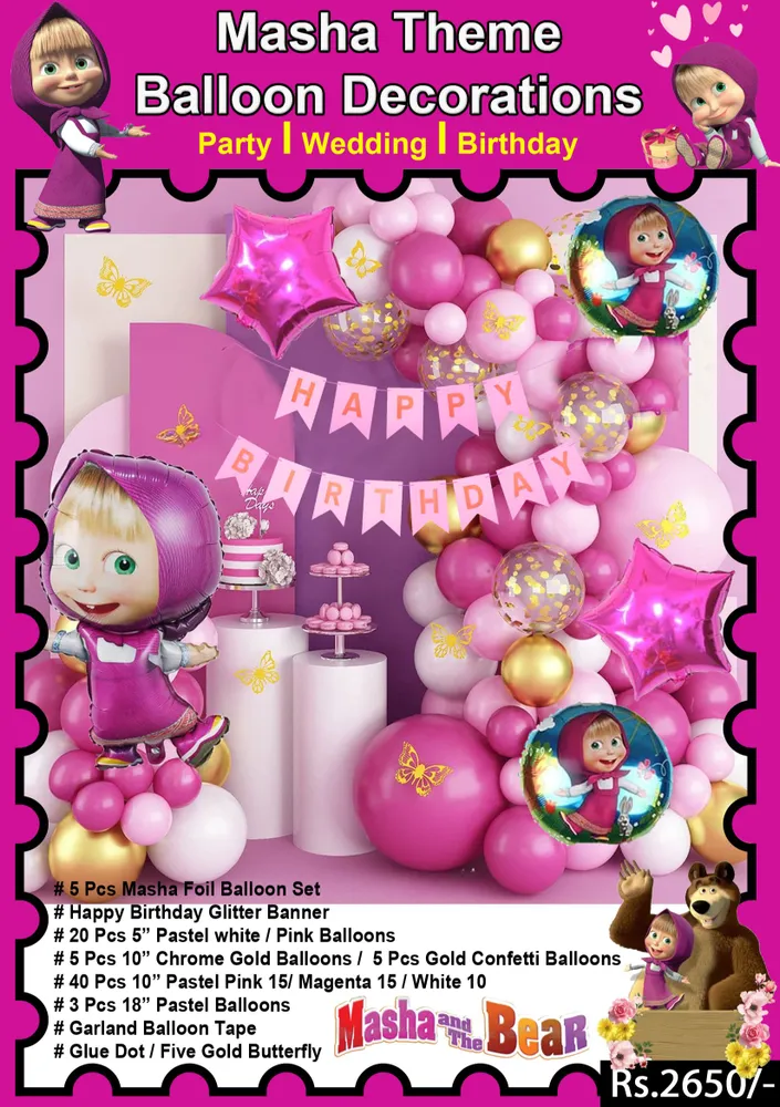 Product details of Birthday Decoration Masha And the Bear Balloon set With Banner Masha Theme Full Set # 5 Pcs Masha Foil Balloon Set # Happy Birthday Glitter Banner # 20 Pcs 5” Pastel ... Read More