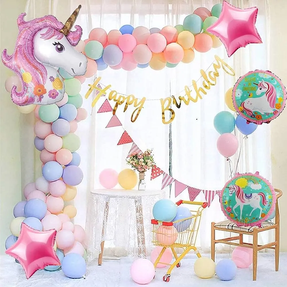 Birthday Decoration Pastel Balloon set With Banner Pastal Unicorn