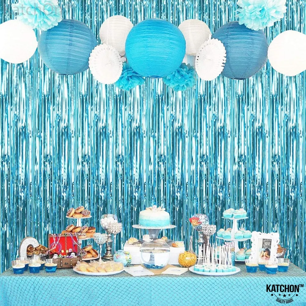 Birthday Light Blue Foil Curtain Fringe Party Backdrops