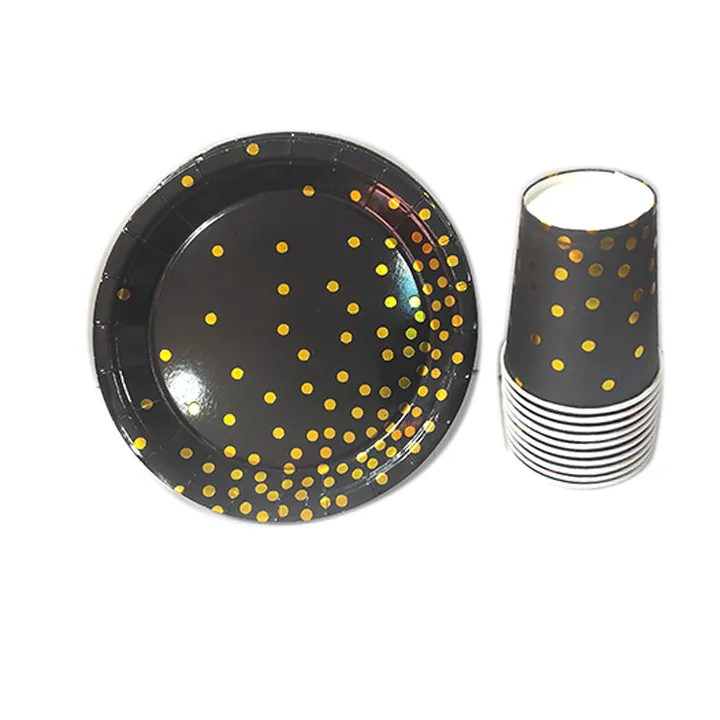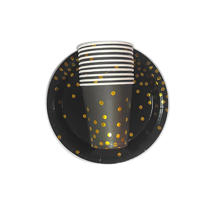 Black & Gold paper plate paper cup Set Partyware Gold Dote