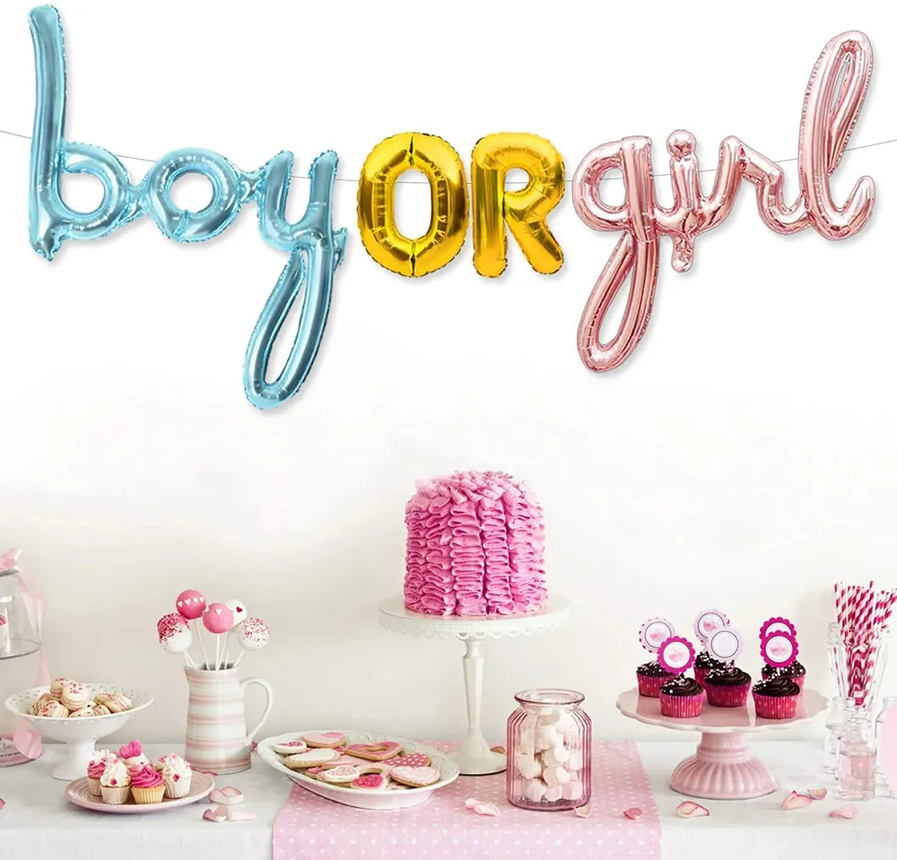 Boy OR Girl Letter Foil Banner Balloon Party Gender Reveal