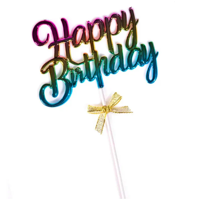 Party Cake Decoration Shine Cake Topper Emboss Plastic Happy Birthday Toppers