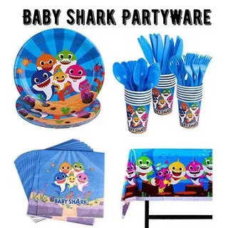 Product details of Shark theme paper plate paper cup and Paper Serviette Set Paper Plate 10 Paper Cup 10 Paper Serviette 20 Set Birthday Party Decor... Read More
