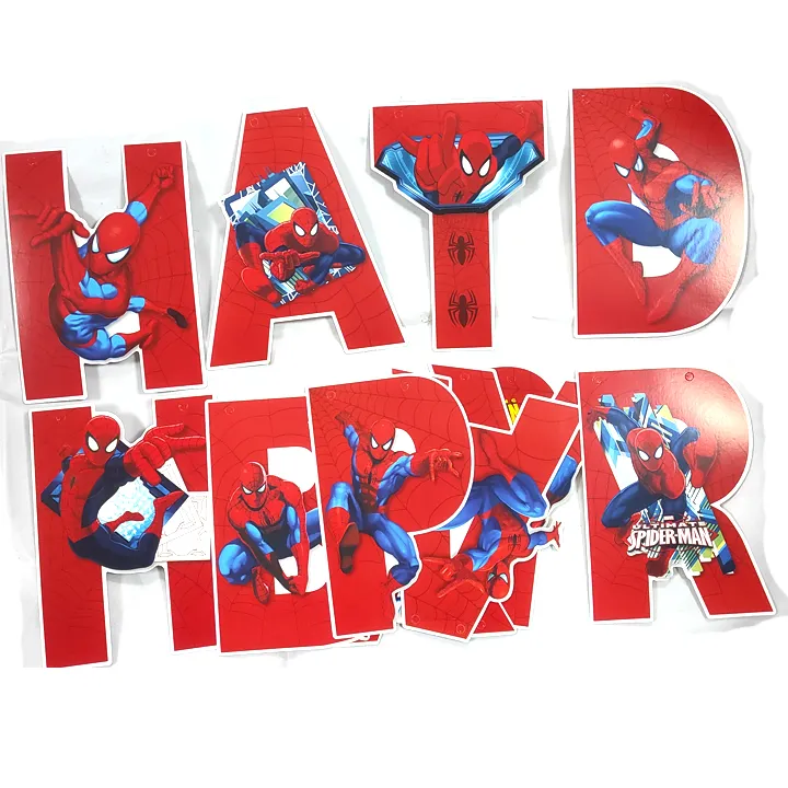 Spider Man Cardboard Party Gala Bunting Letter Banner Happy Birthday Party Decoratings