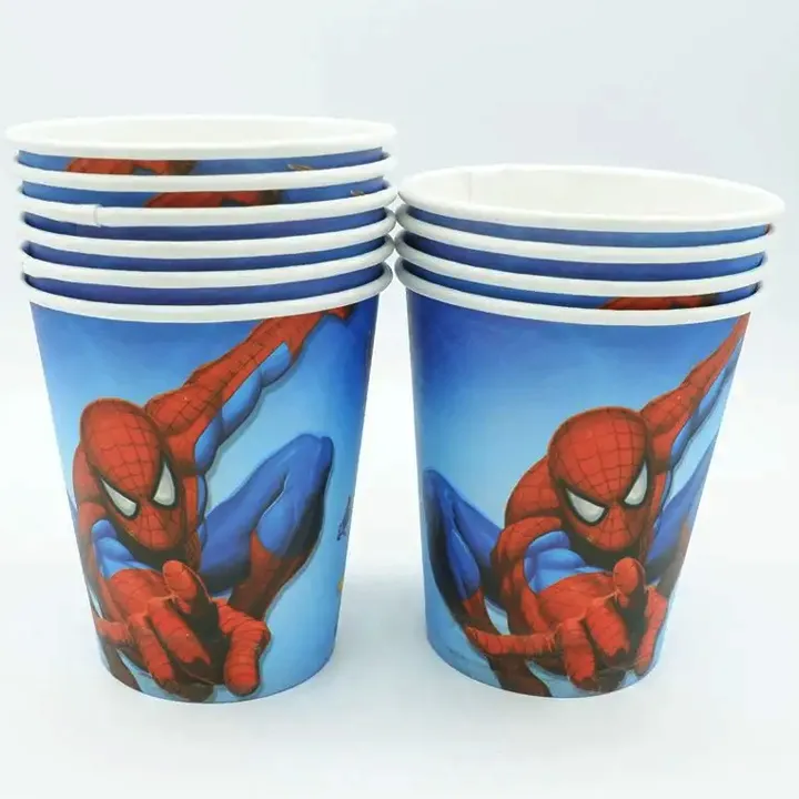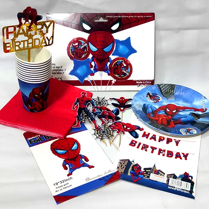 Spider Man Theme paper plate paper cup Paper Serviette Cake Topper Foil Balloon Cup Cake Topper Banner Set Partyware Super