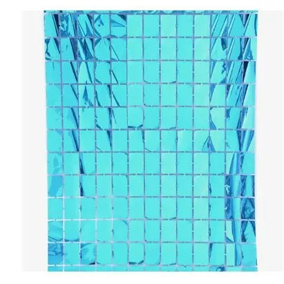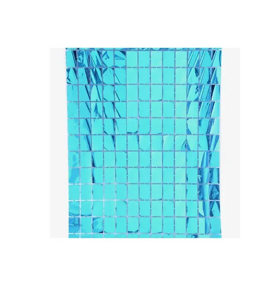 Square Box Shape Light Blue Foil Fringe Curtain Birthday Decoration
