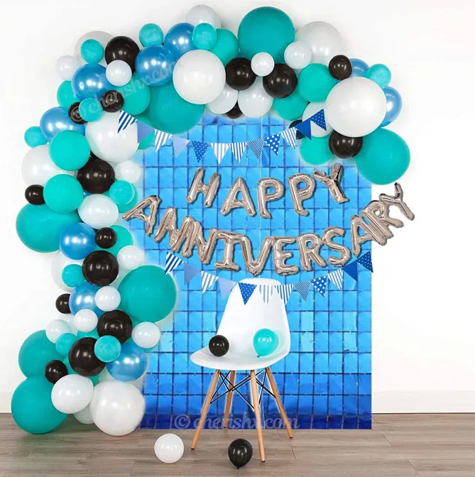 Square Box Shaped Light Blue Foil Fringe Curtain Birthday Decoration