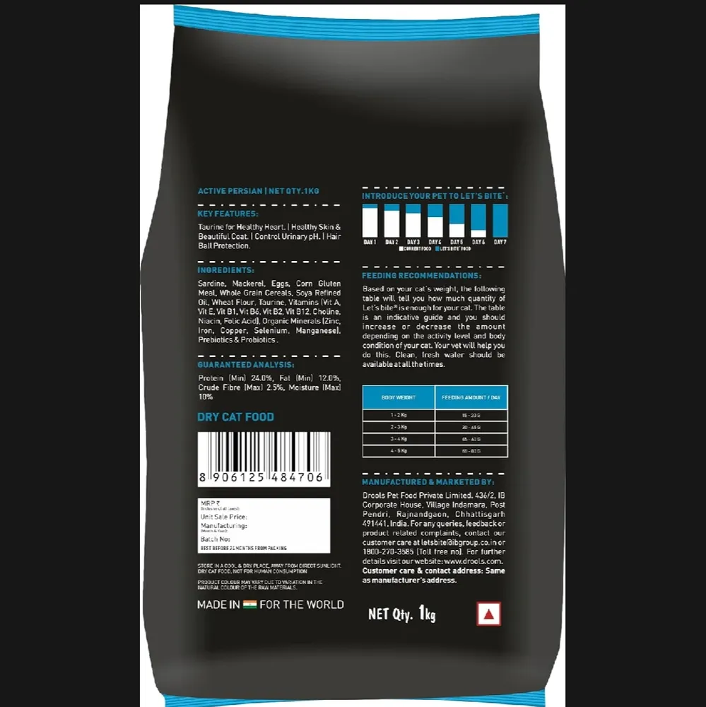 Let's Bite Active Persian(+1 Year) Dry Cat Food (1kg X 2 PACKS) Lets Bite Cat Food Made with Sardine, Egg & Mackerel Tailored for Persian Cats: Specifically designed to meet the nutritio... Read More