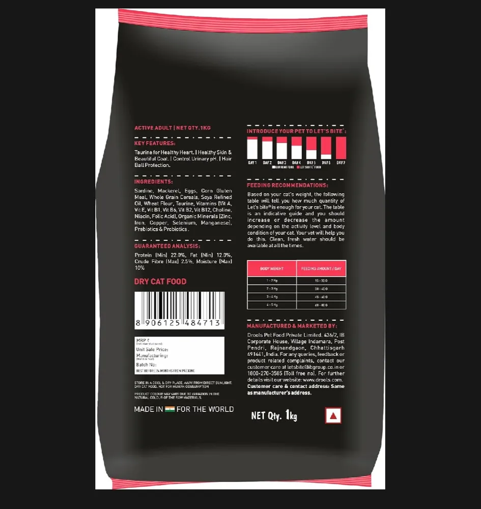 Let's Bite Active Adult(+1 Year) Dry Cat Food 5kg Lets Bite Cat Food Made with Sardine, Egg & Mackerel Premium Ingredients: Made with high-quality sardine, egg, and mackerel, providing a... Read More