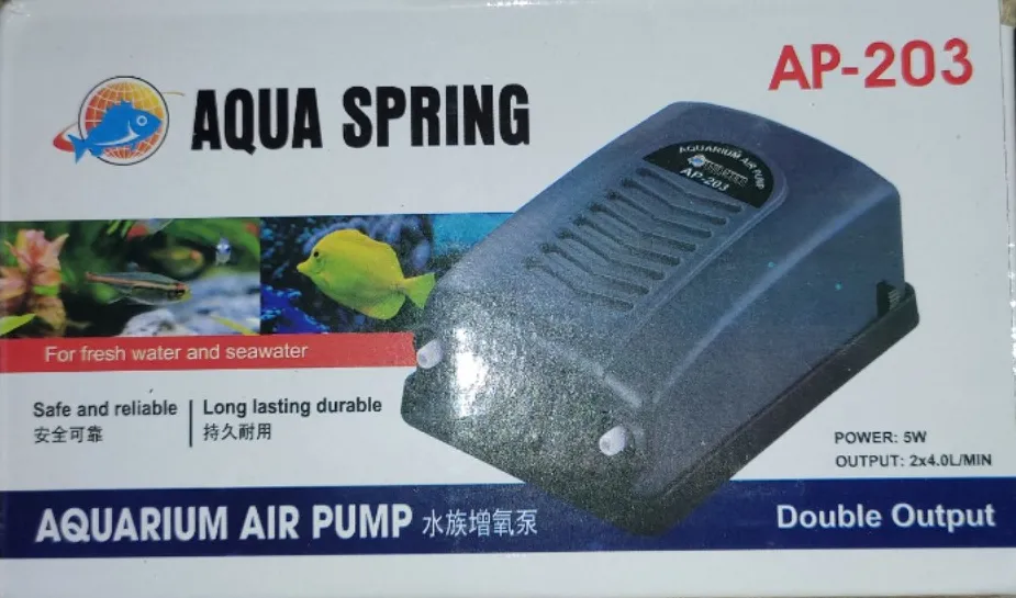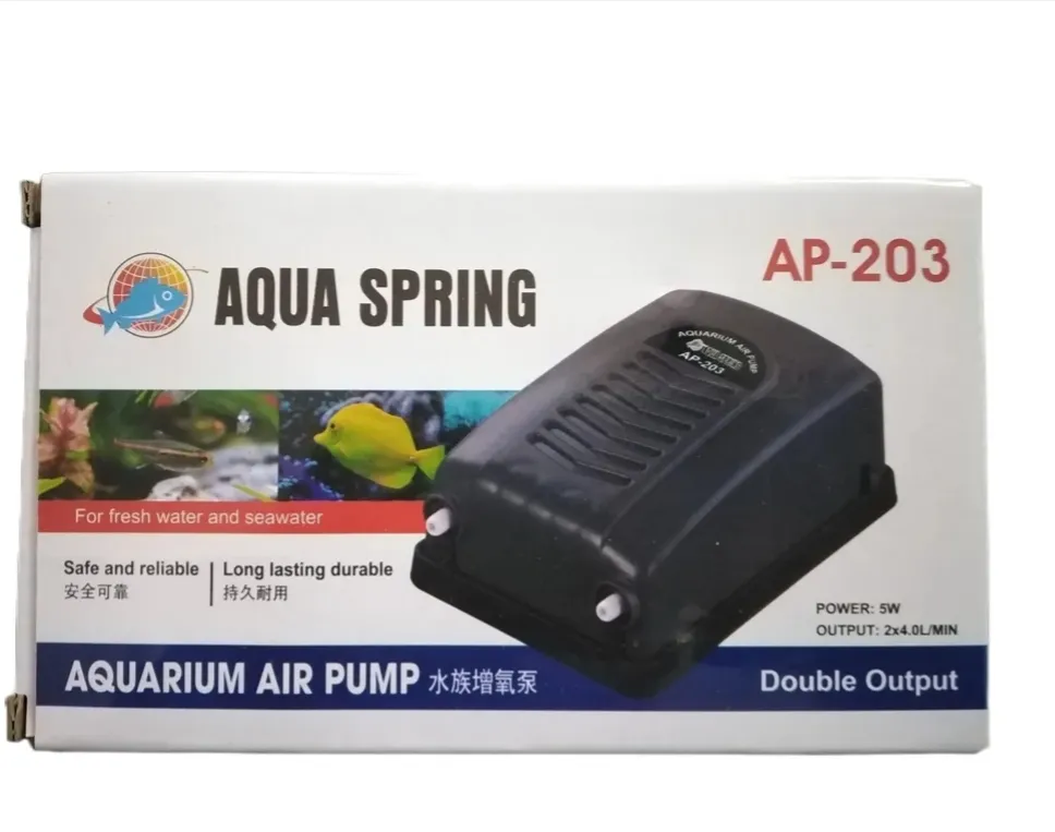 Aqua Spring AP-203 4L/min 5W Double Outlet Aquarium Fish Tank Air Pump Oxygen Pump Double outlet for fish tank oxygenation Suitable for aquariums and fish tanks Power: 5W Provides up to 4L... Read More