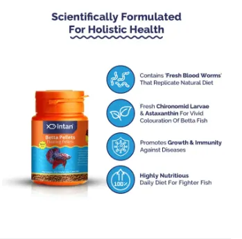 Intan Growel Betta Pellets 27g (1mm Floating) Highly Nutritious Ornamental Fish Food For Betta Siamese Fighters, Crown Tail, Longfin, Big Eared & Koi Contains Fresh Blood worms that re... Read More
