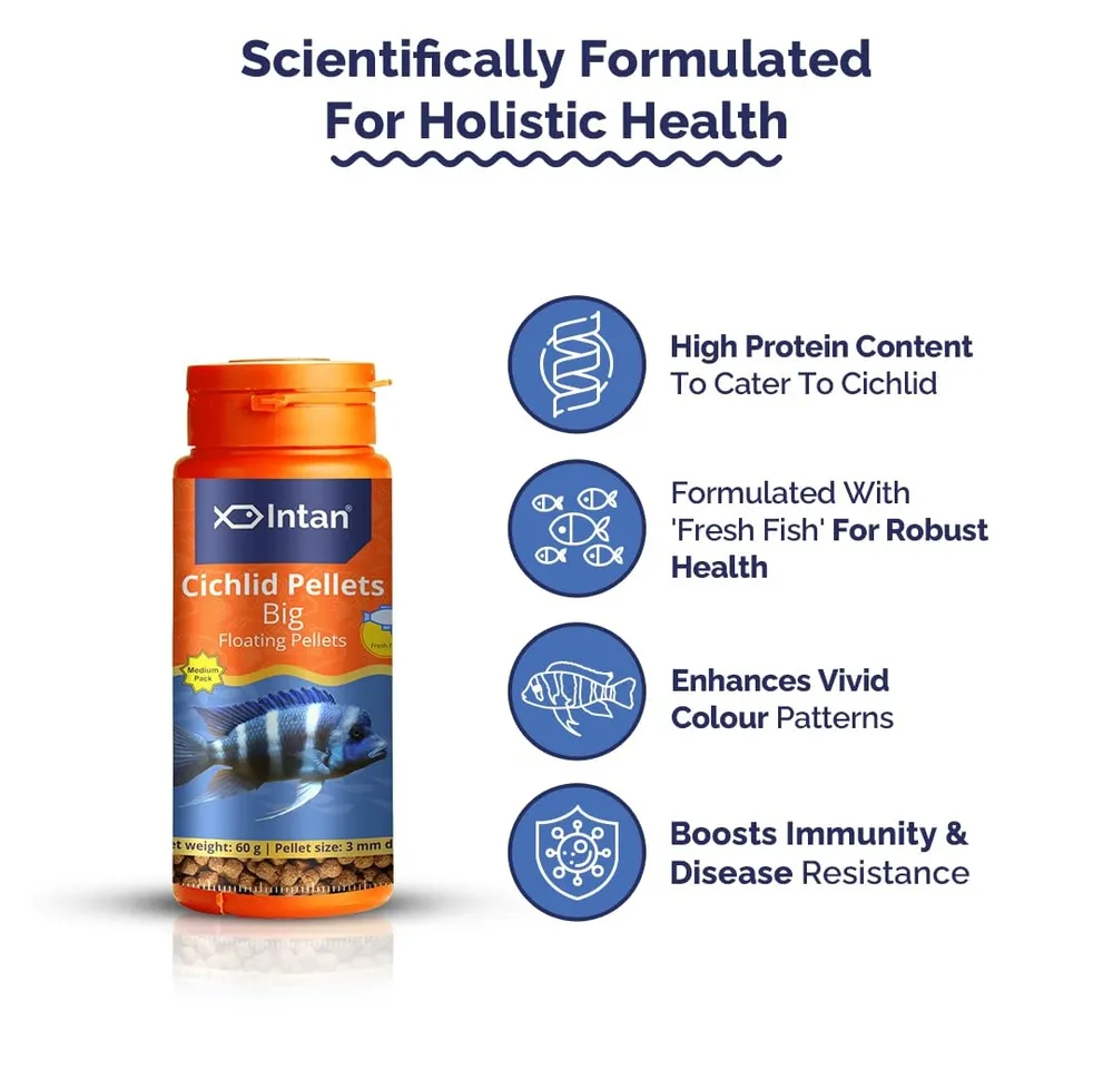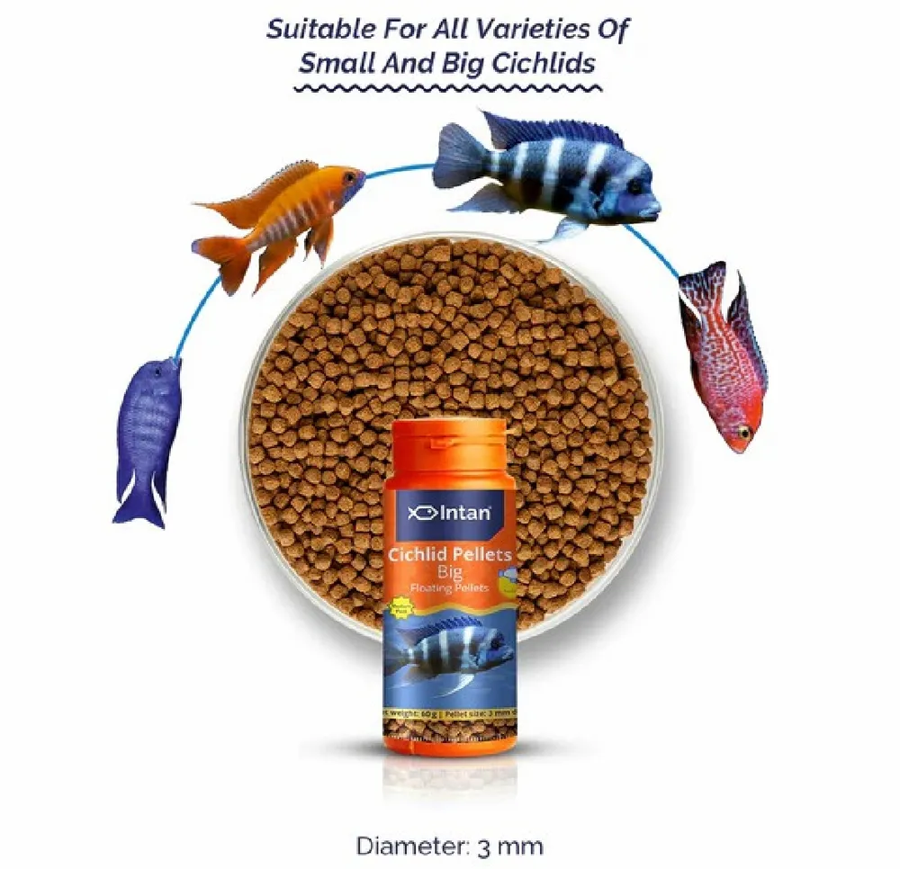 Intan Growel Cichlid Pellets Big 60g (3mm Floating) Highly Nutritious Ornamental Fish Food for all varieties of Small & Big Cichlids Fish Feed