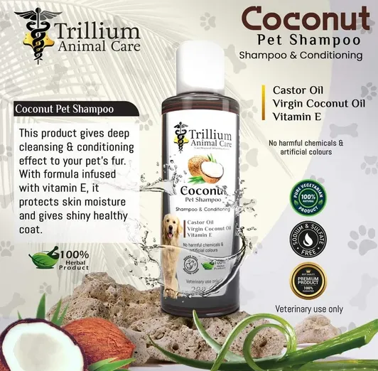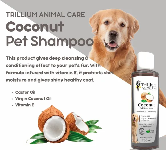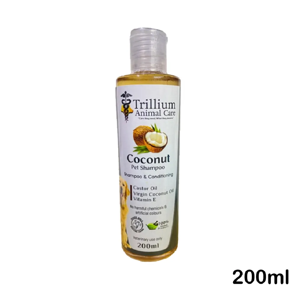 Trillium Coconut Pet Grooming Shampoo – 200ml Shampoo & Conditioner for Dogs & Cats with Moisture-Rich Coconut Care