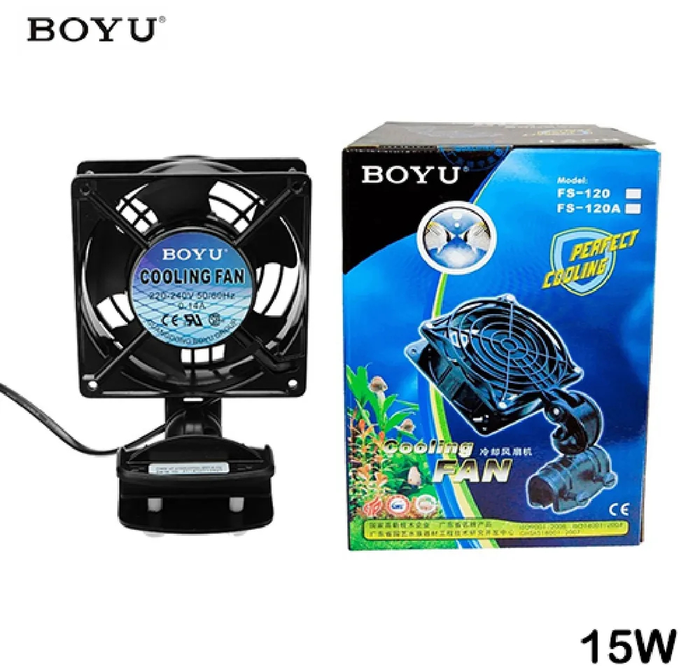 BOYU FS-120 15W Aquarium Cooling Fan Radiator Adjustable 360 Degree Fish Tank Temperature Control Mini Fan Planted Tanks