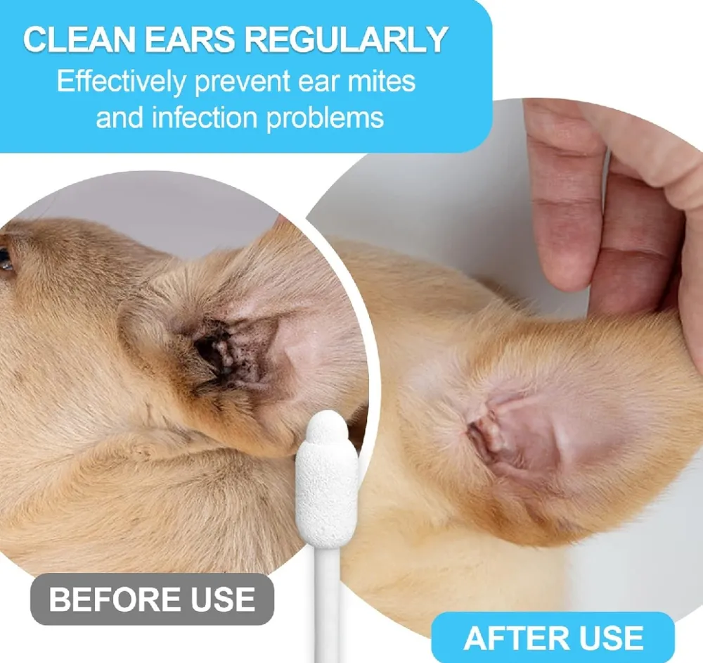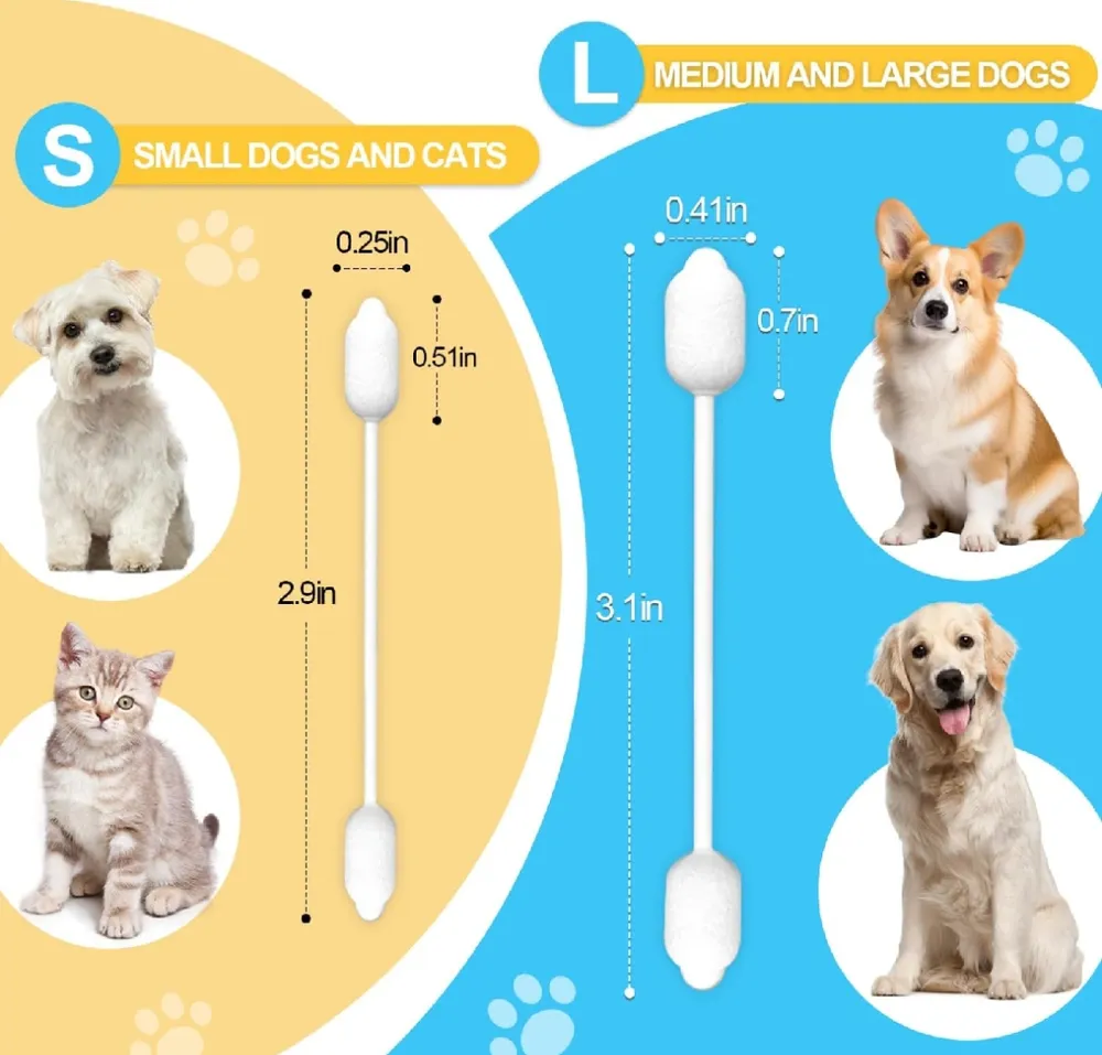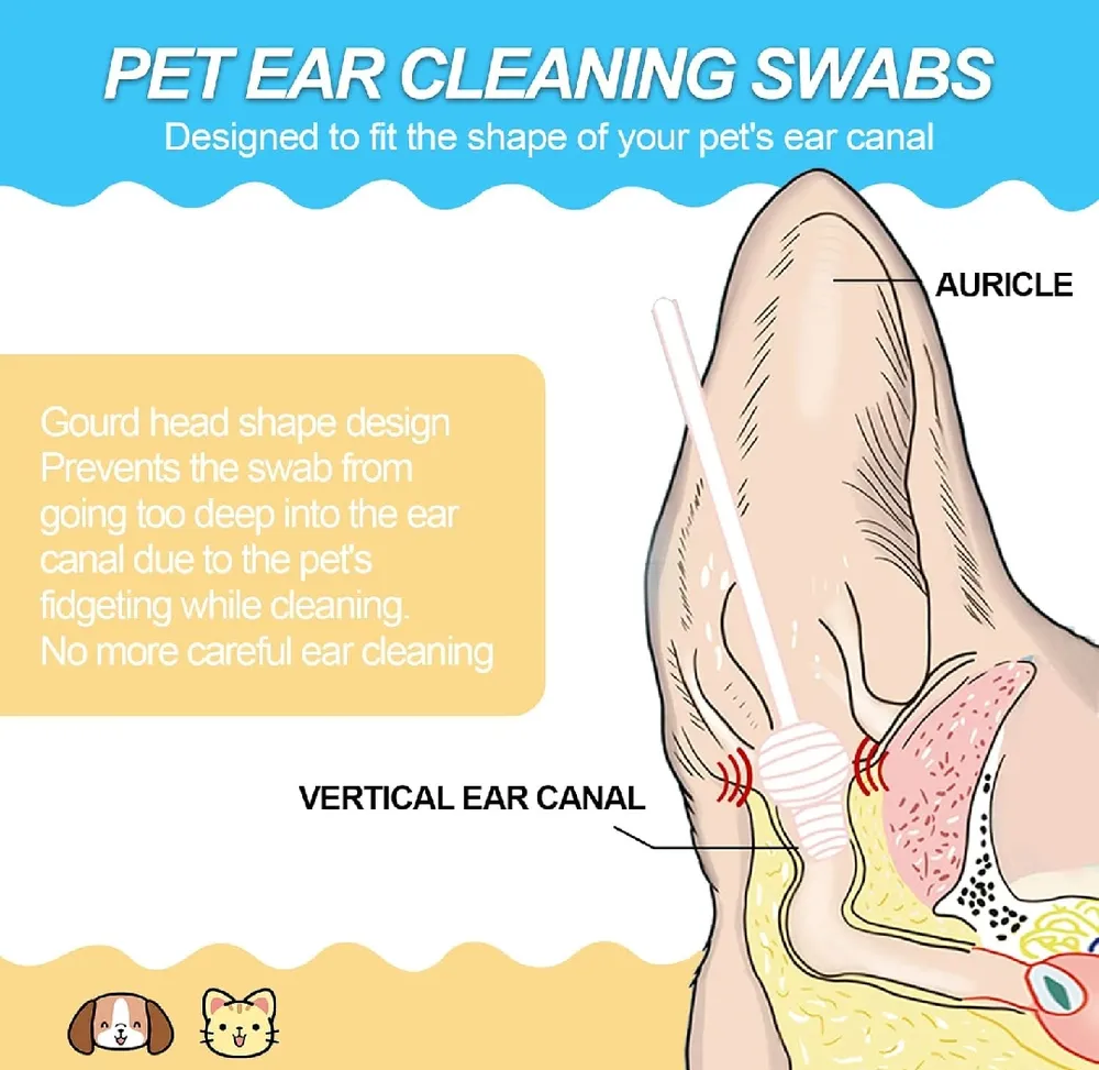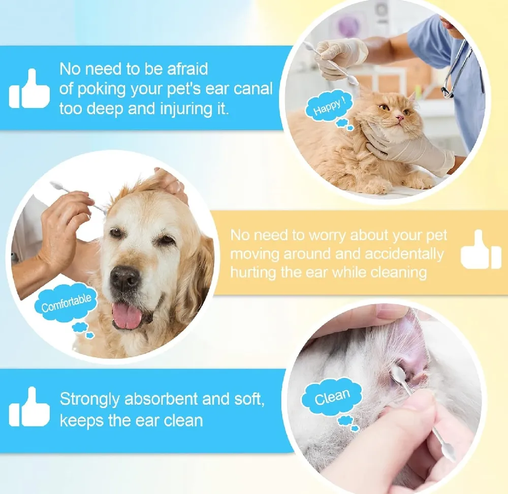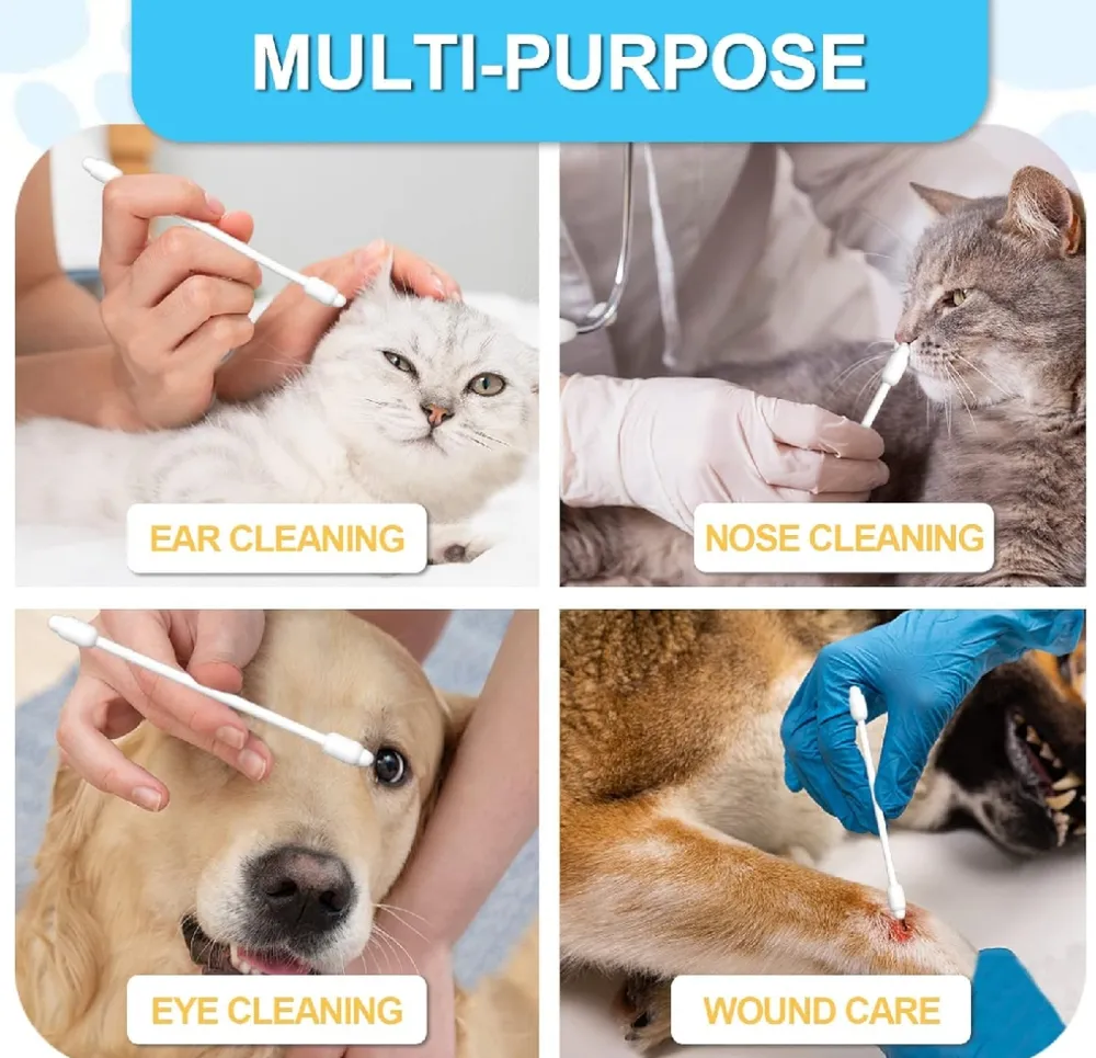 Pet Cotton Swab Cat Dog Ear Cleaning Swabs Biodegradable Gentle Safety Cotton Buds Specially Designed Cotton Sticks for Pets Cats Dogs Grooming