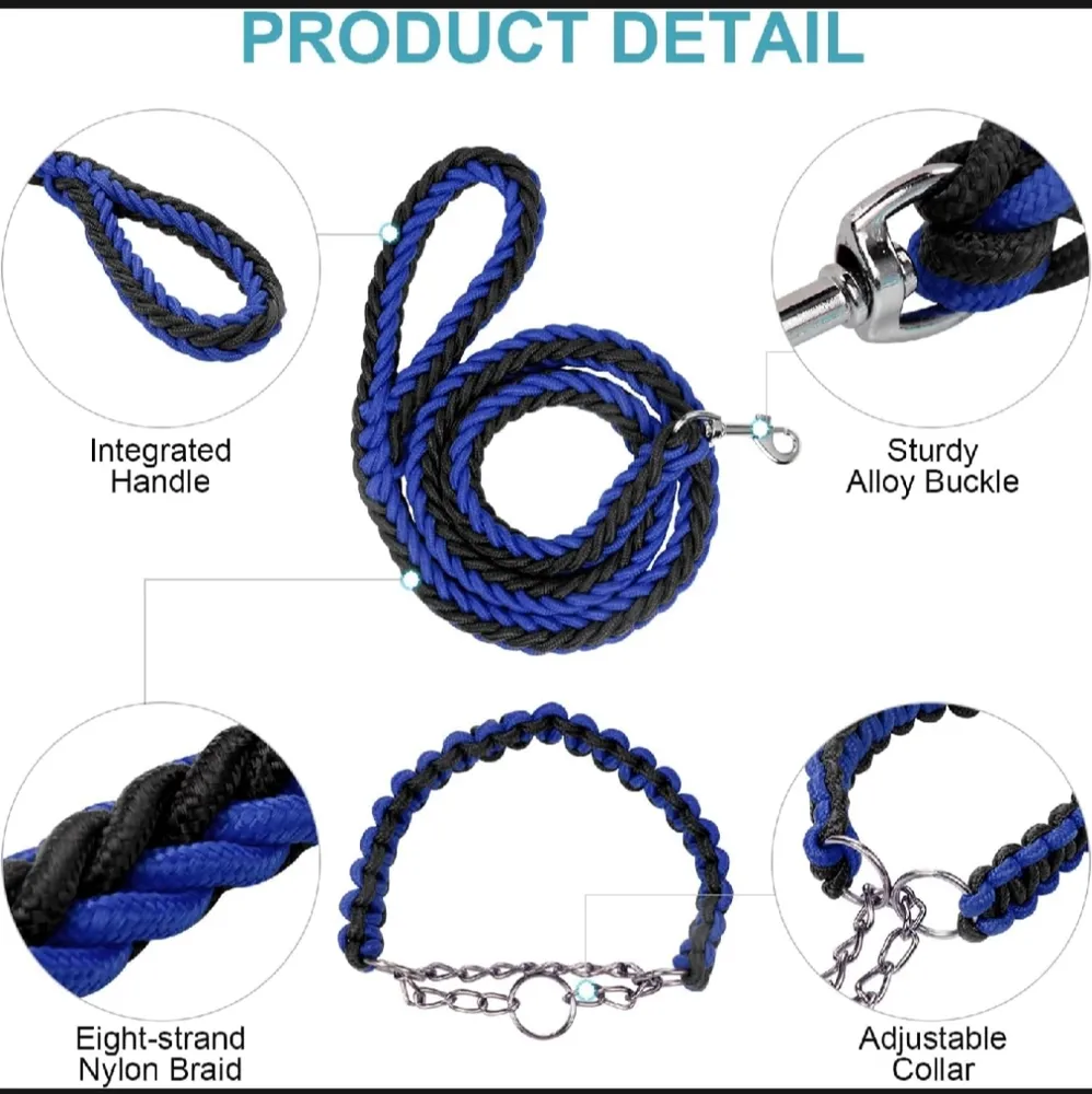 Dog Leash with Adjustable Collar Dog Leash for Walking, Running, Hiking, Nylon Rope Braided Dog Training Leash Material: The dog leash is an eight-strand nylon braid with a strong metal clasp, e... Read More