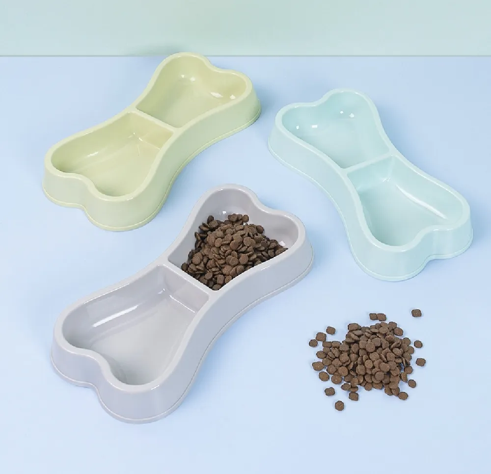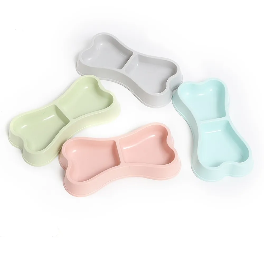 Double Bowl Feeder for Pets Bone Shape Feeding Bowl for Dogs and Cats Thick and Glossy Plastic Durable