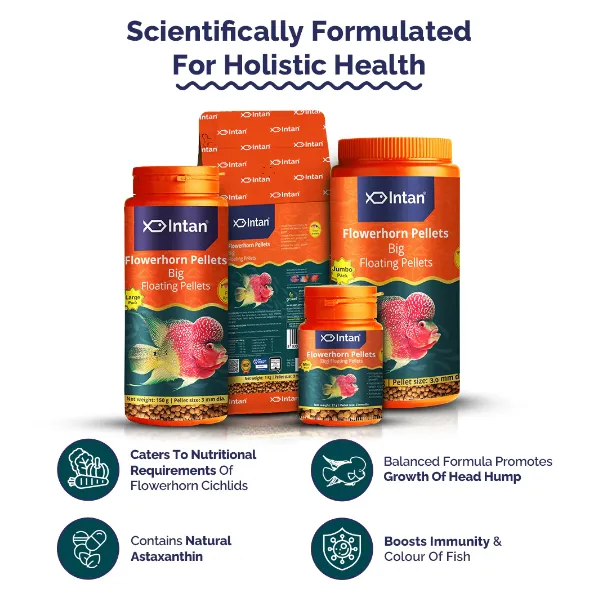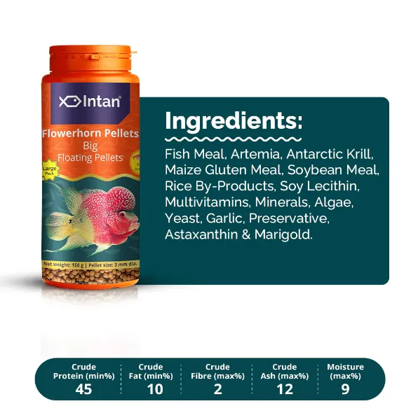 Intan Growel Flowerhorn Pellets Big 150g (3mm Floating) Highly Nutritious Fish Food for All Types of Flowerhorn & Kamfa Fish Feed Uniquely balanced formula to promote head hump growth & ... Read More
