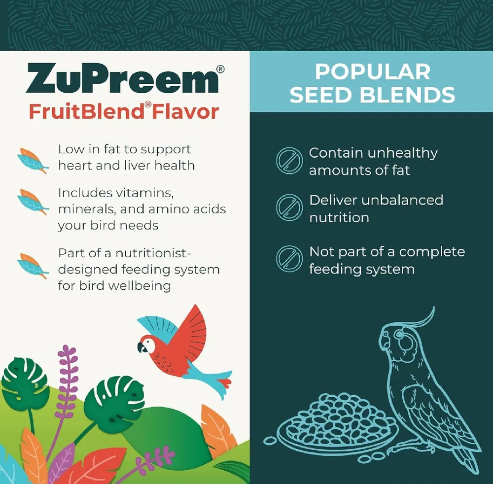 ZuPreem FruitBlend Bird Food for Medium Birds 250g (Repacked) Made in USA Bird Feed Pellets for Cockatiel, Lovebird, Quaker, Small Conure, Lorikeet, Core Nutrition with Natural Fruit, Cockatiel Food, ... Read More