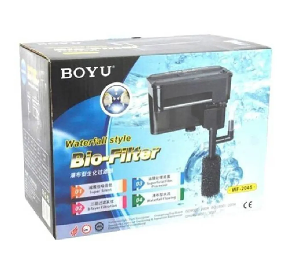 BOYU WF-2045 500L/H 6.5W Waterfall Style Aquarium Fish Tank Bio-Filter Hang on Filter Model: WF-2045 Voltage: AC230 / 115V Frequency: 50/60 Hz Power: 6.5W Flow: 500L/H Size: 235x118x32... Read More