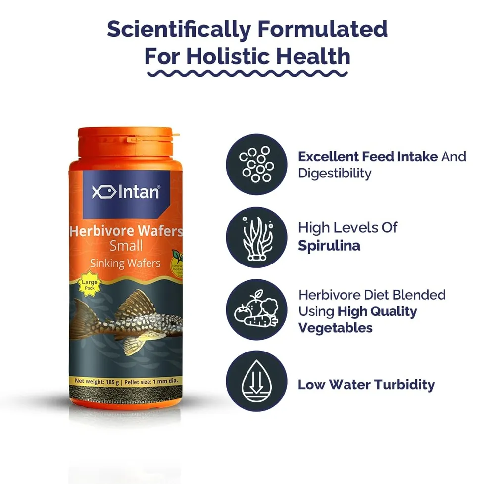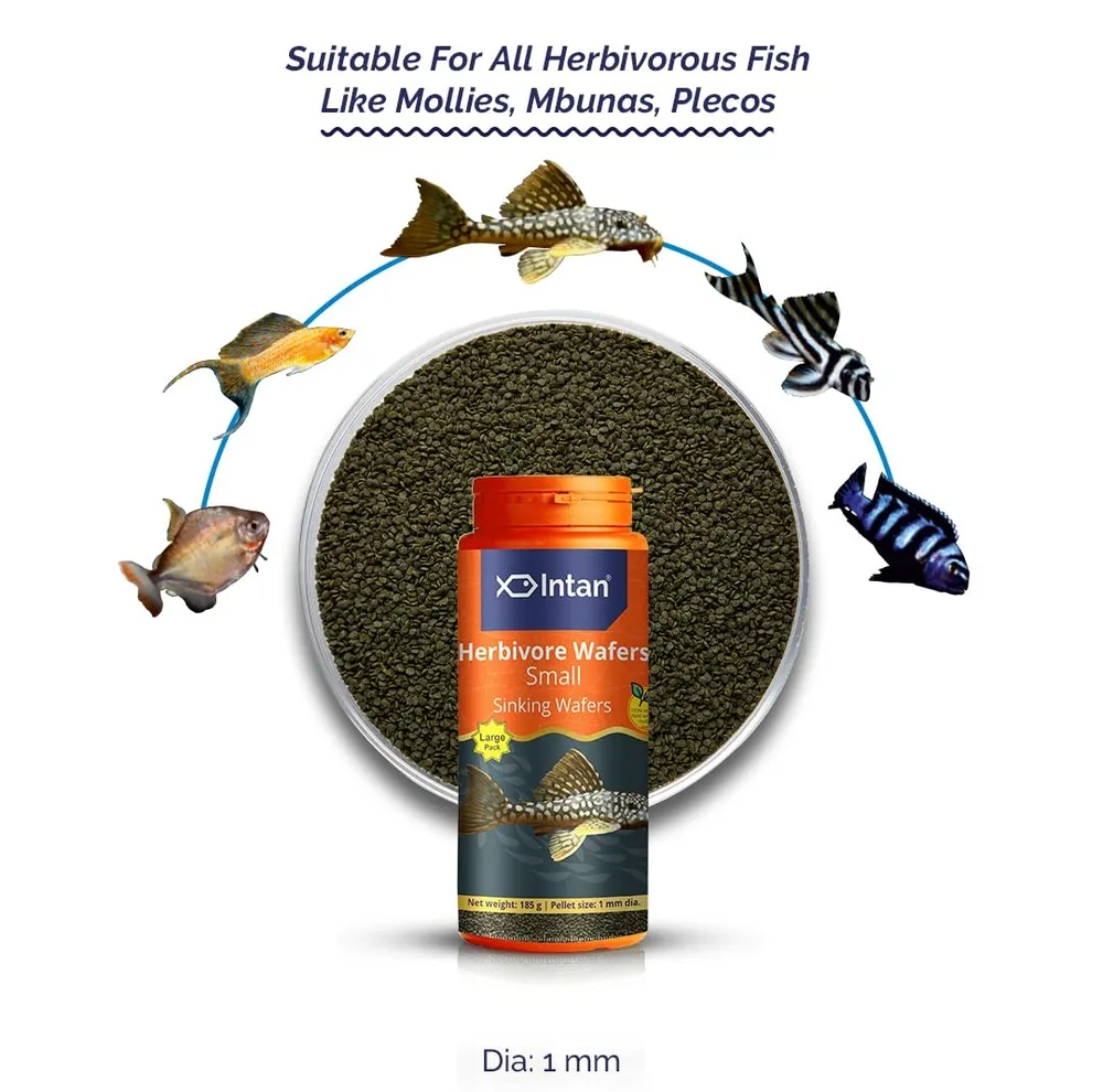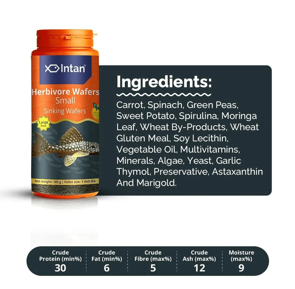 Intan Growel Herbivore Wafers Small 185g (1mm Sinking) Highly Nutritious Ornamental Fish Food for Herbivorous Fish - Mollies, Mbunas & Plecos