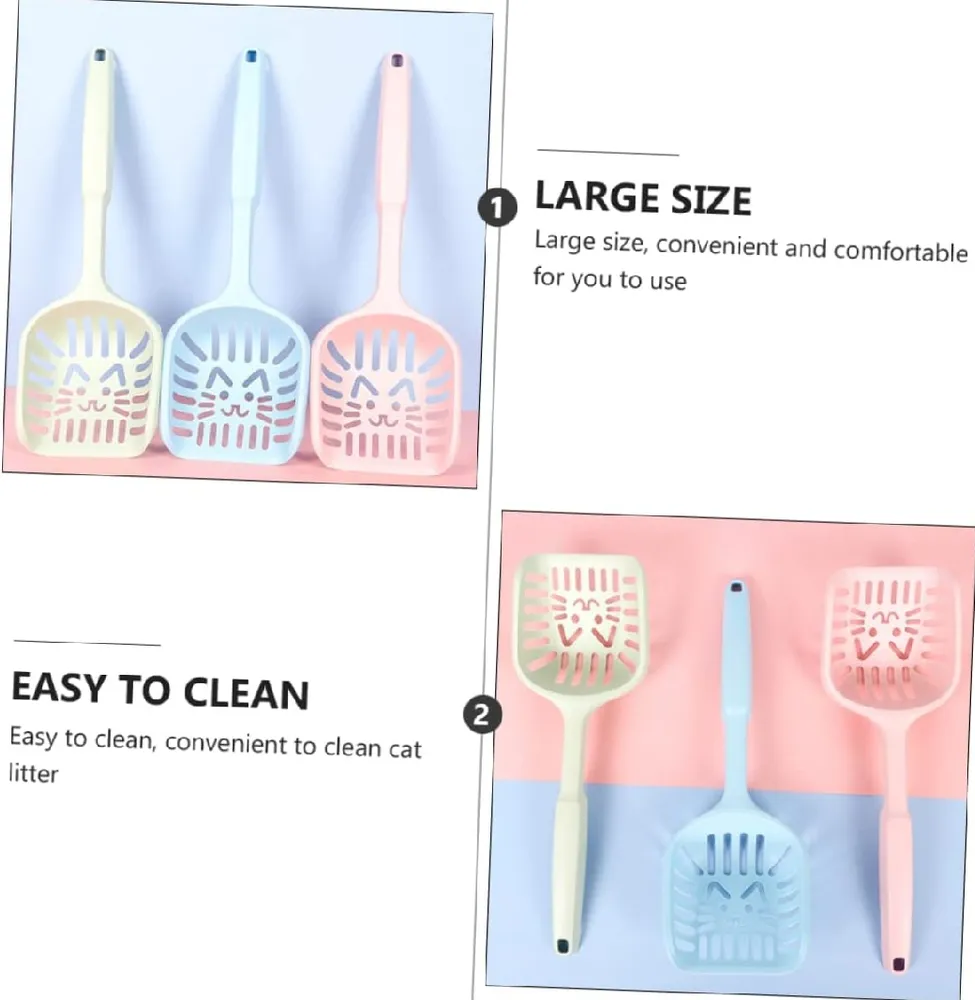 Cat Faced Plastic Large Cat Litter Scoop Pet Care Sand Waste Scooper Shovel Hollow Cleaning Tool Hollow Style Lightweight Durable Cat Shovel