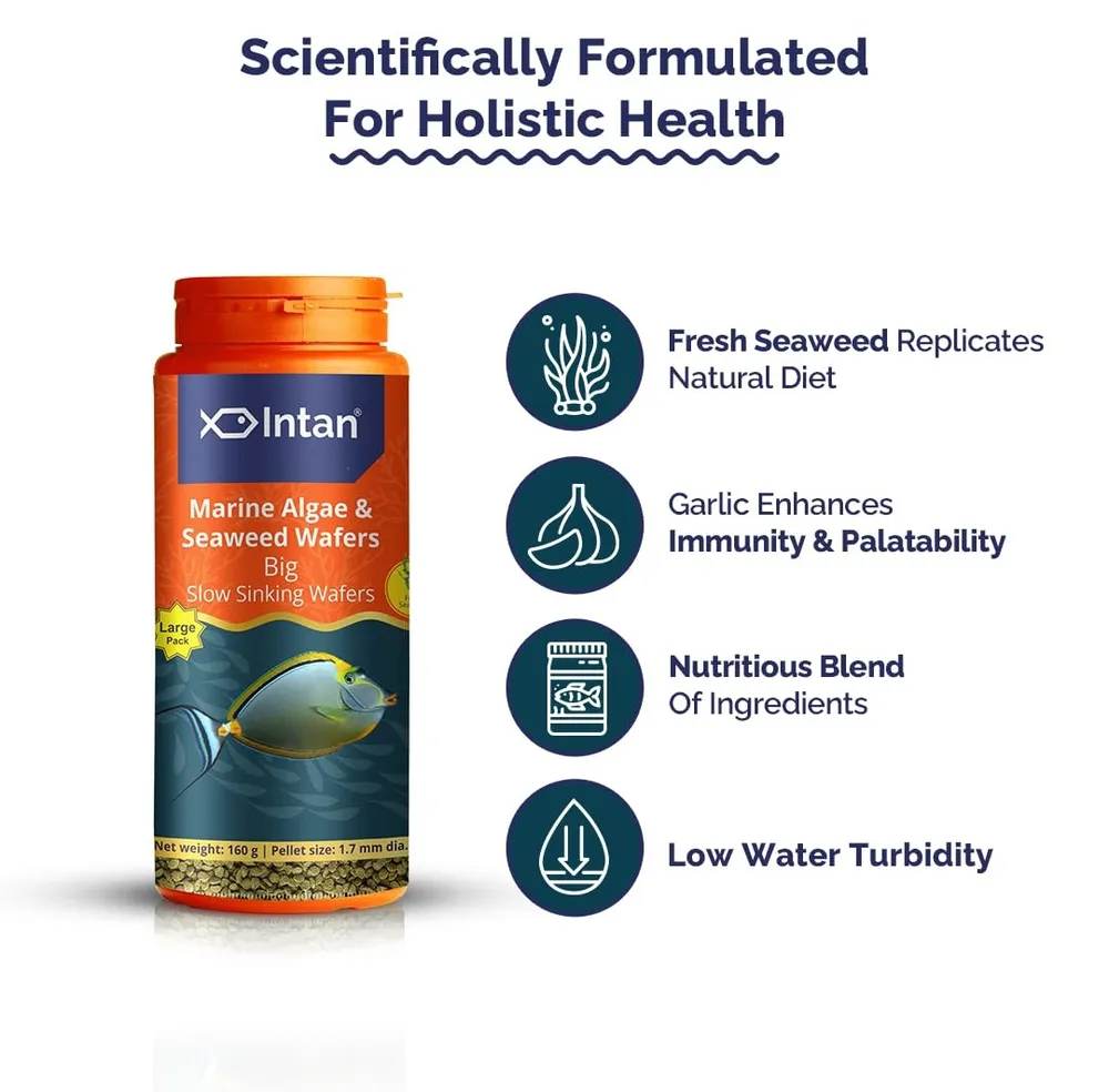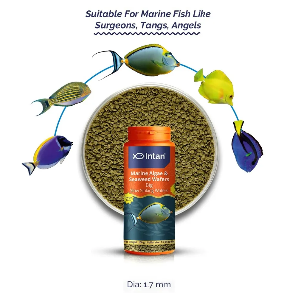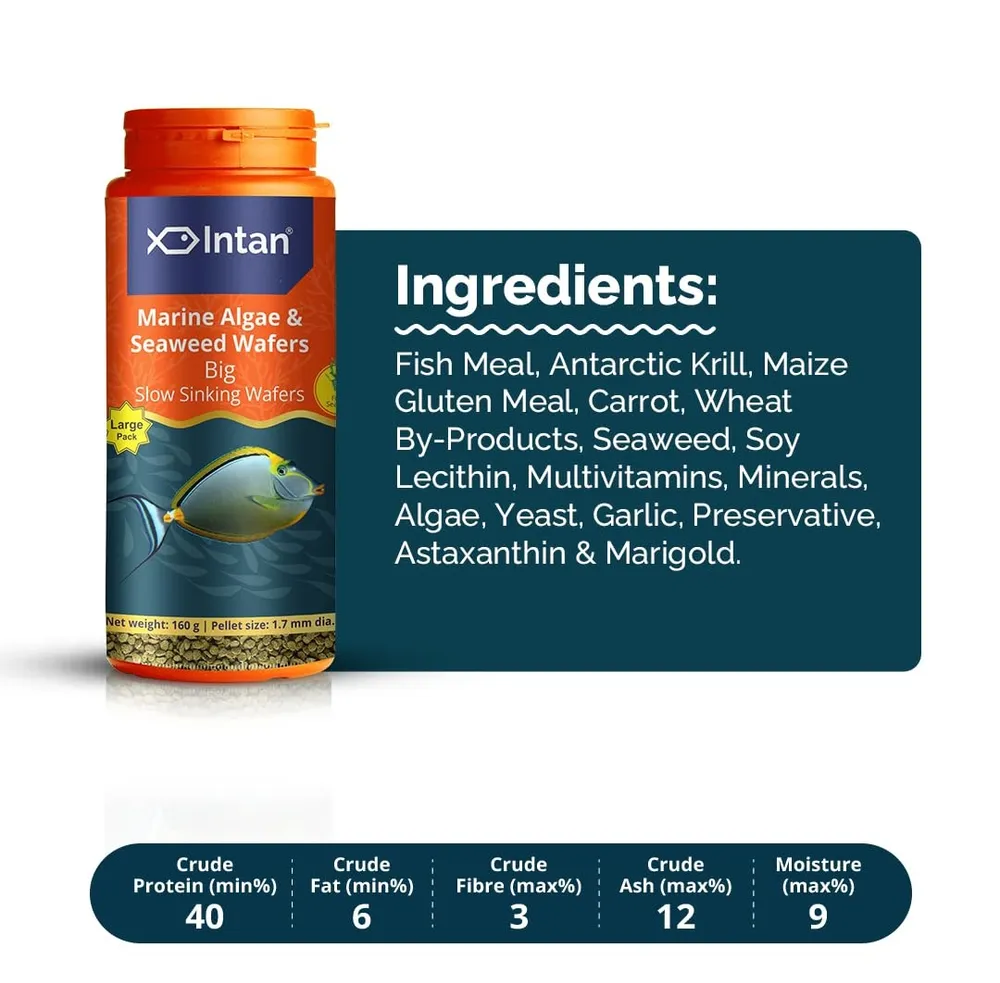 Intan Growel Marine Algae & Seaweed Wafers Big 160g (1.7mm Slowly Sinking) Highly Nutritious Ornamental Fish Food for Marine fish - Surgeons, Tangs &