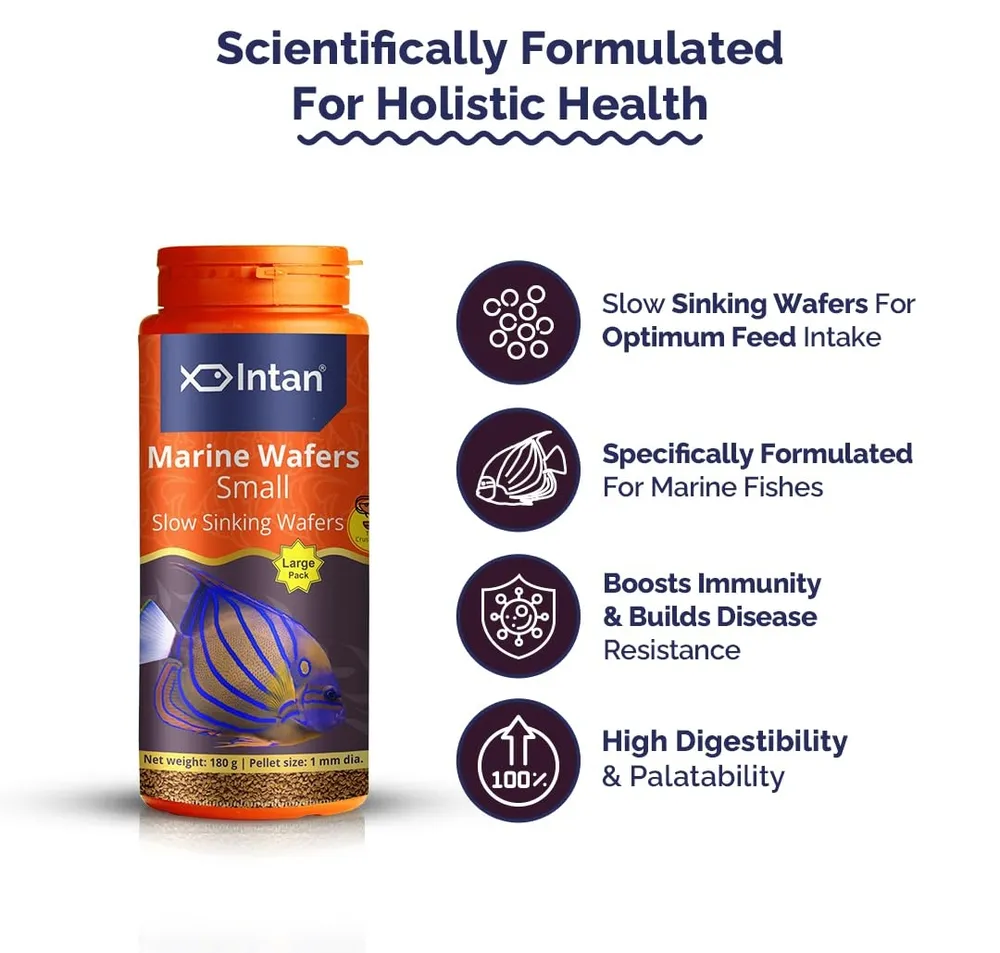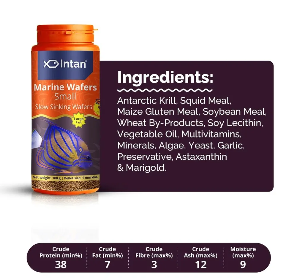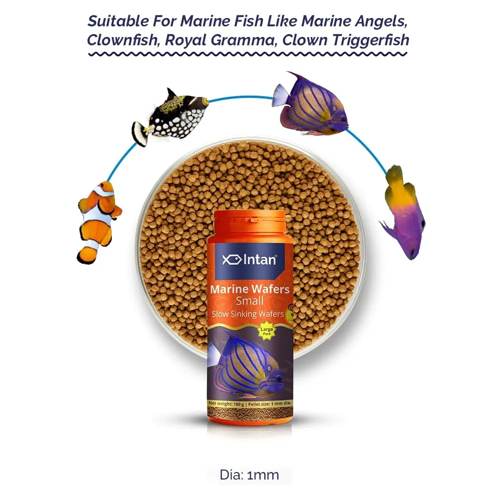 Intan Growel Marine Wafers Small 180g (1mm Slowly Sinking) Highly Nutritious Ornamental Fish Food for Marine Angels, Clownfish, Royal Gramma & Clown T