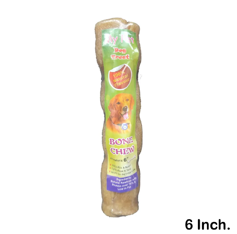My Pet Bone Chew Roll Dog Treat Chew Bone 6 Inch. Pet Dog Puppy 100% edible & natural Fights plaque & tarter Satisfy your dog's urge to chew Nutritious treats & high protei... Read More