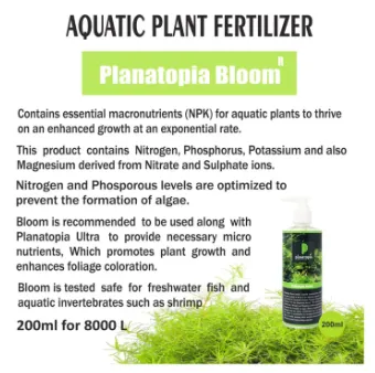 Planatopia Bloom 200ml/625ml Aquarium Fish Tank Liquid Fertilizer Planted Tank Aquatic Plant Fertilizer Aquatic plant fertiliser Planatopia’s range of plant fertilizers has been develope... Read More