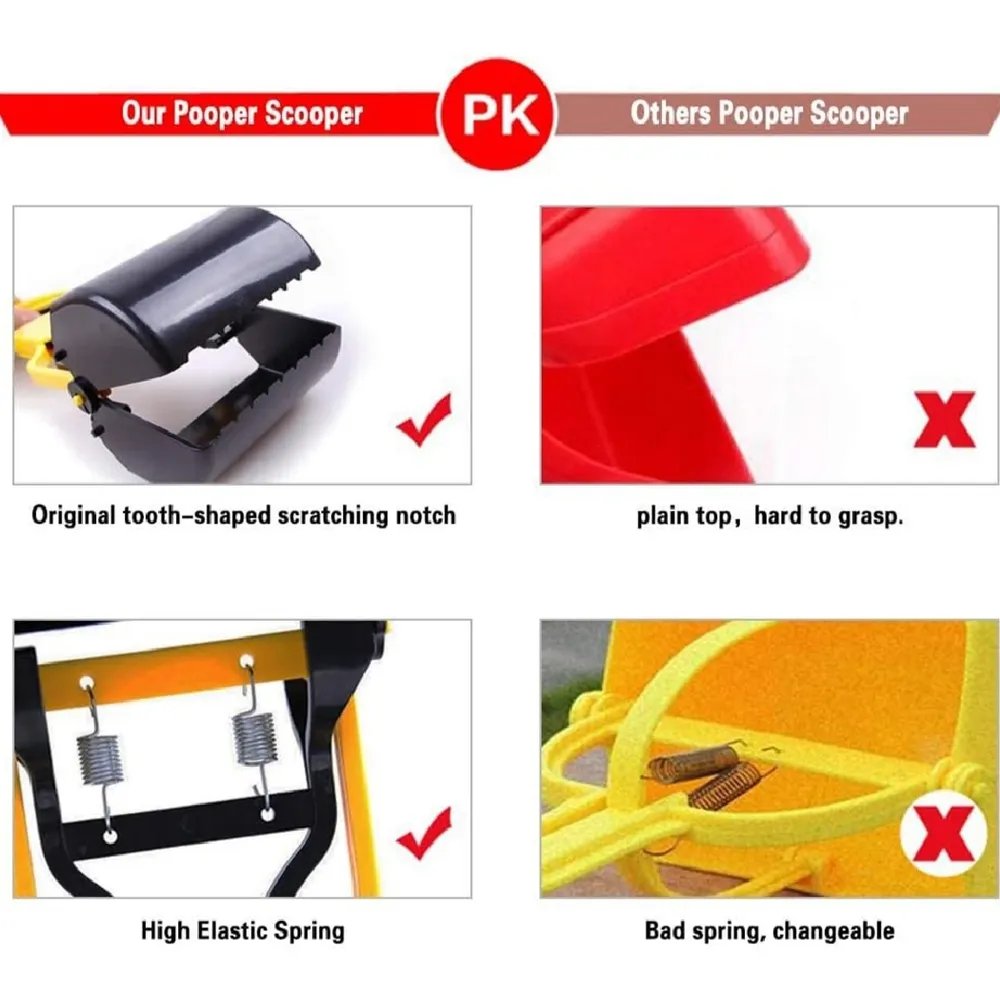 Pet Pooper Scooper Poop Scoop Portable Dog Pooper Scooper with Handle & High Strength Durable Spring Poop Waste Pick Up Rake Tool