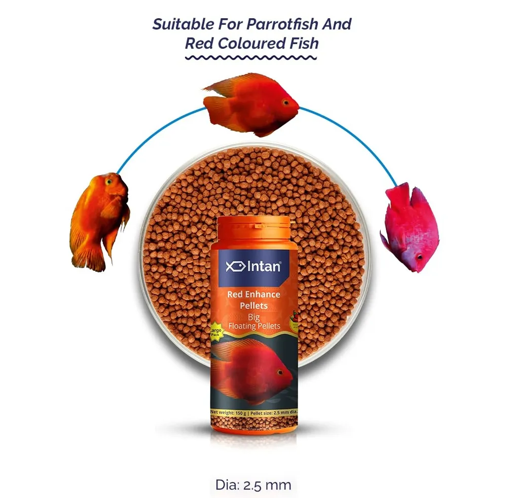 Intan Growel Red Enhance Pellets Big 150g (2.5mm Floating) Highly Nutritious Ornamental Fish Food for Parrot Fish & Other Red-Coloured Fish