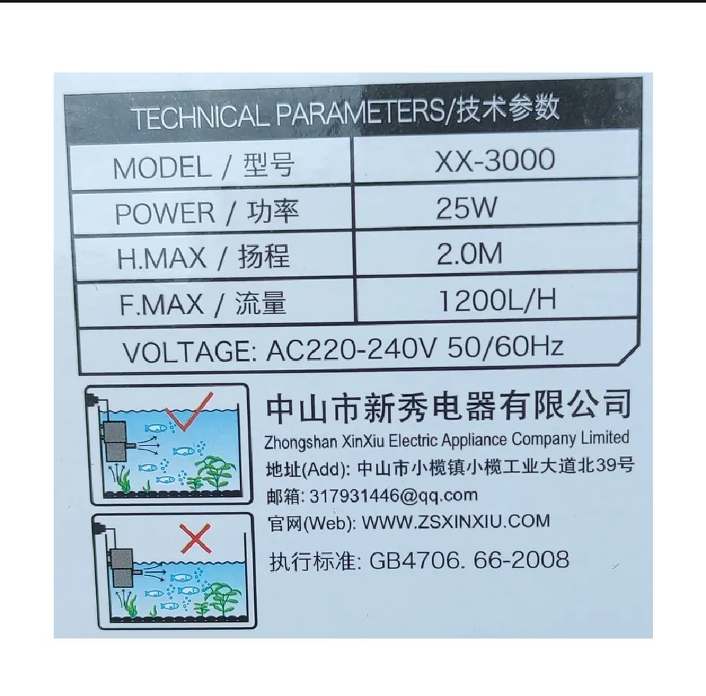 Aqua Spring XX-3000 1200L/H 25W Aquarium Fish Tank Submersible Pump Water Pump Powerhead