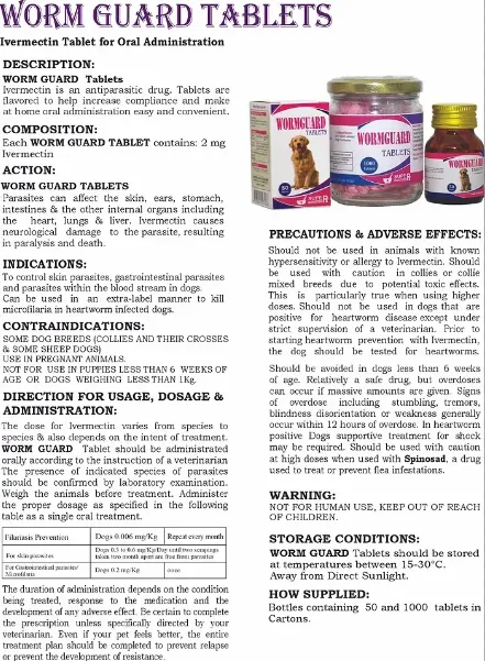 Worm Guard Tablets for Dogs – Broad-Spectrum Dewormer with Ivermectin (50 Tablets)