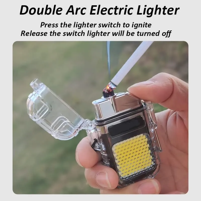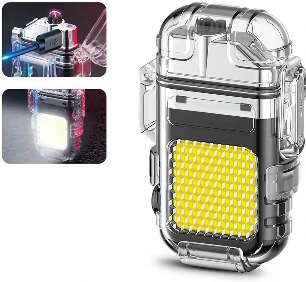 Electric Lighter Rechargeable USB C, Dual Arc Lighter with COB Light, IP56 Waterproof Plasma Lighter for Outdoor Camping, Transparent Body Cool Lighte