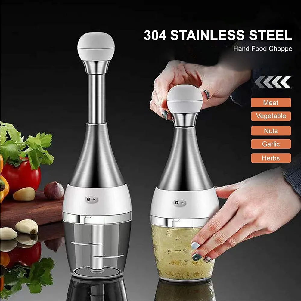 Hand Food Chopper Manual Food Processor Vegetable Quick Chopper Stainless Steel Onion Chopper for Garlic Salad Nuts Herbs