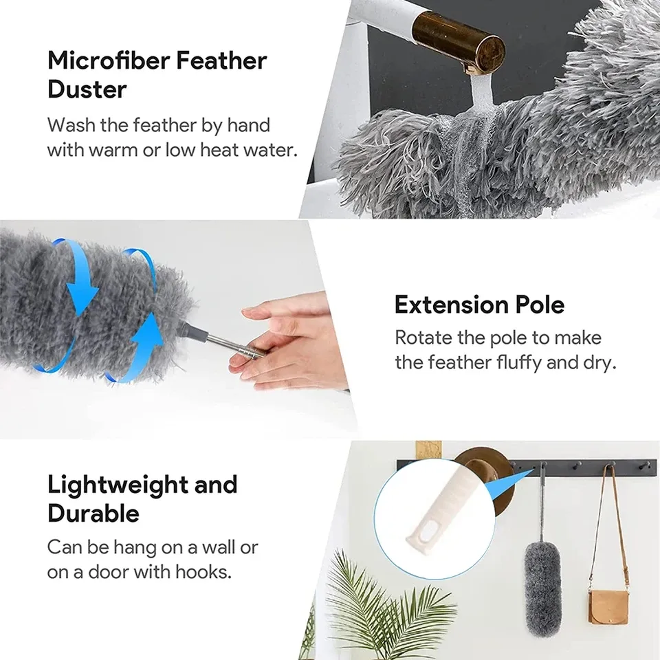 Product details of Long Handle Duster high Duster Feather Duster extendable dust Remover Fan Cleaner Feather dusters Cleaning telescoping Duster Ceiling Duster, Size: 8 Foot. Long MICROFIBER &am... Read More