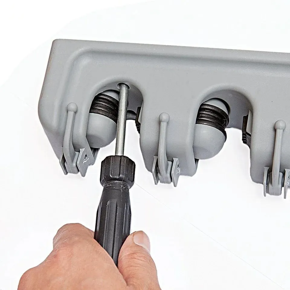 Mop and Broom Holder Organiser | 5 Slot Position with 6 Hanging Hooks | Garage Storage up to 11 Tools | Wall Mounted Hanging | Strong Holding