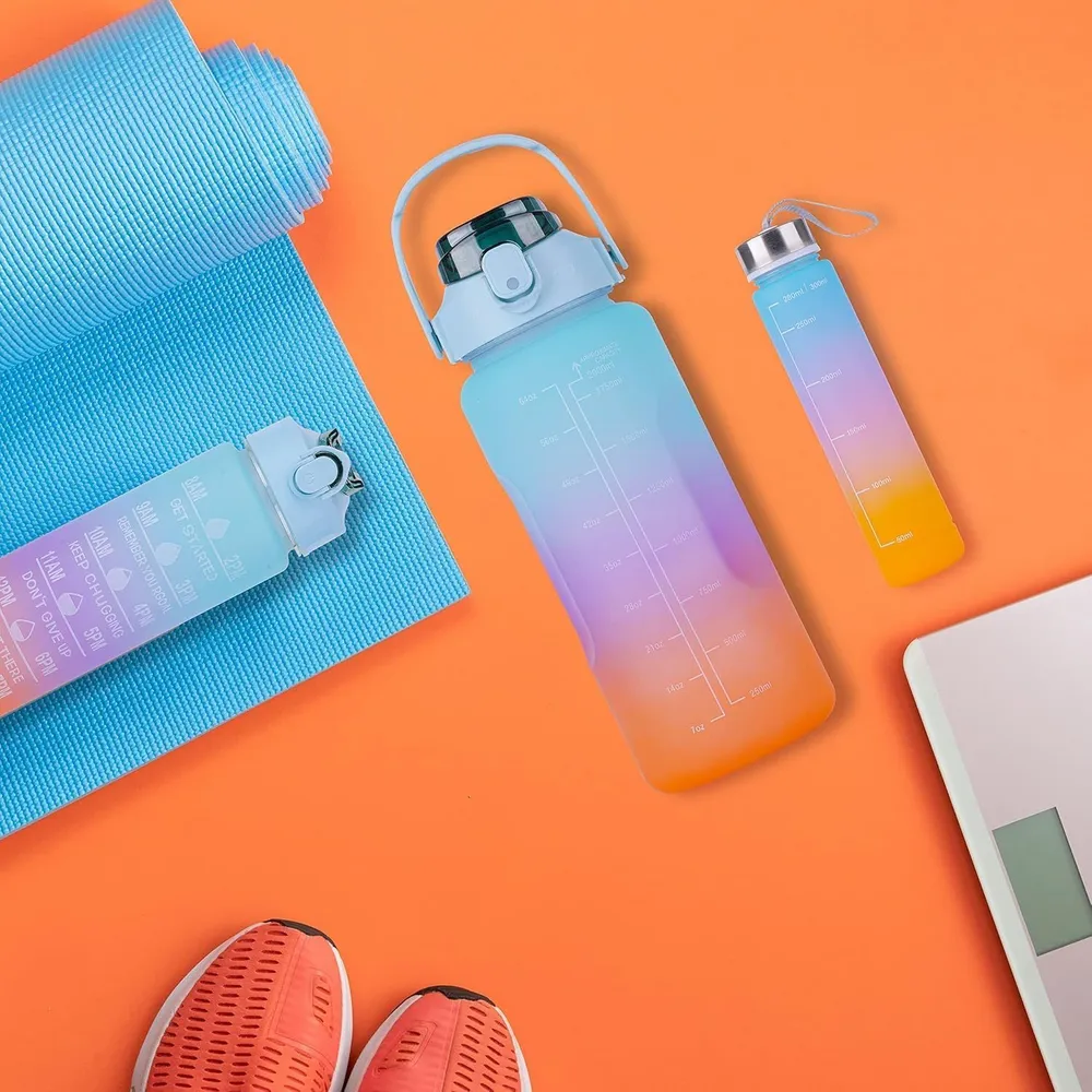 Motivational Time Marker 3Pcs Set Water Bottle 2000ML, 900ML, 300ML Leakproof Durable Sipper Water bottle for office, School, gym Sports BPA-free Sipp