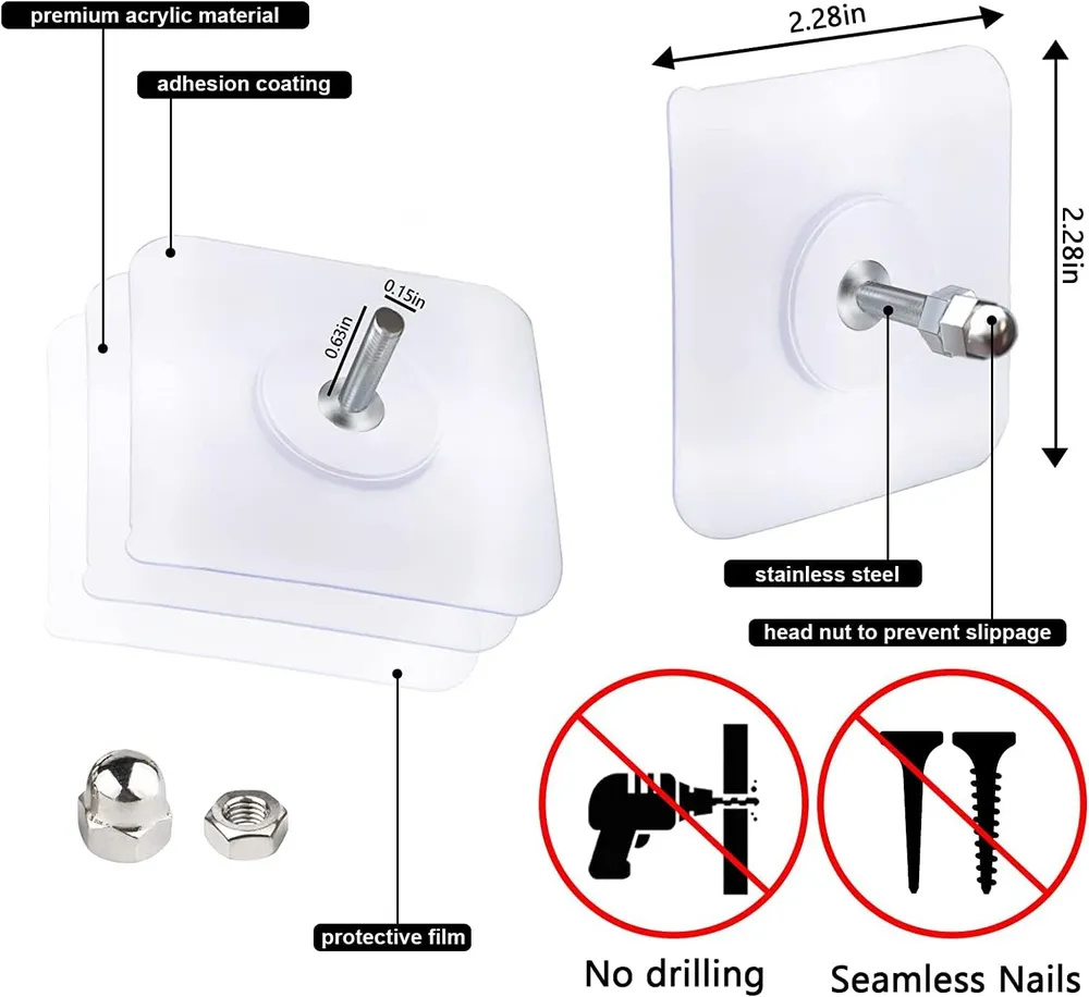 ABS Nail Free Seamless Adhesive Non-Trace No Drilling Installation Hanging,Adhesive Hooks for Wall Heavy Duty Wall Hook Waterproof Stick on Adhesive S