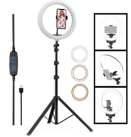 10 Inch Selfie LED Ring Light Adjustable Phone Holder 360 Rotatable Studio Light for YouTube TikTok Online Classes Photography