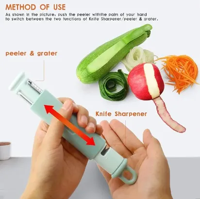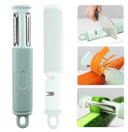 3-in-1 Vegetable Peeler with 2-Stage Knife Sharpener and Julienne Peeler – Stainless Steel Veggie Grater for Fruits and Potatoes